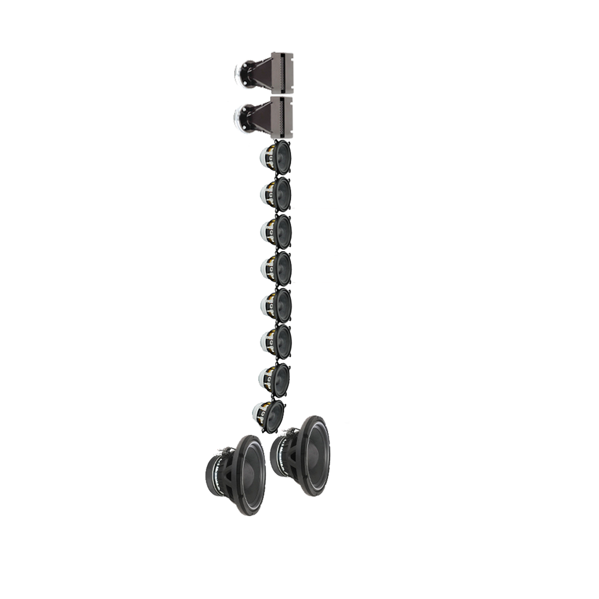 2 1-inch compression drivers with titanium diaphragm and waveguide system: These provide accurate dispersion of high frequencies, optimized by the waveguide system for even coverage.